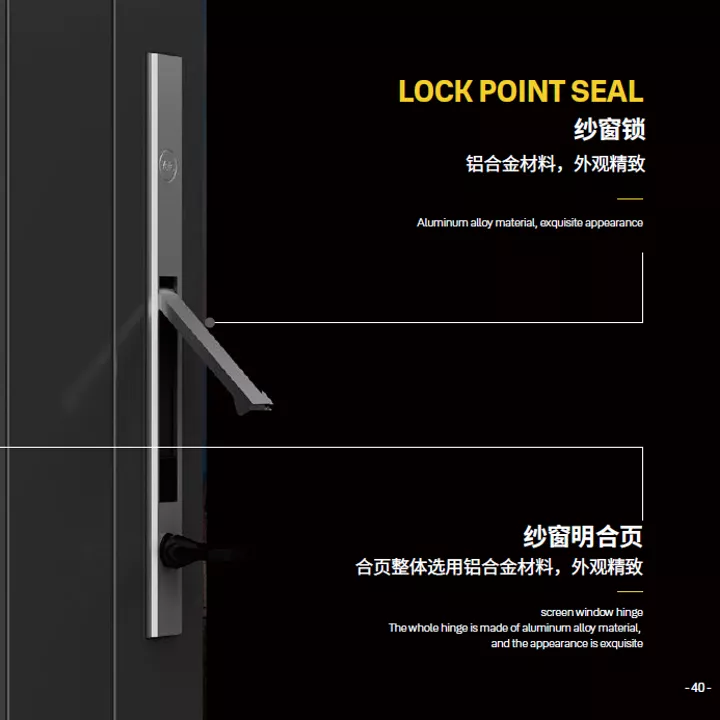 高强度锌合金材料,锁体强度;隐藏式拉手,窗整体美观大方;指纹标识设计,细节满满;六角形钥匙,通用性更强;