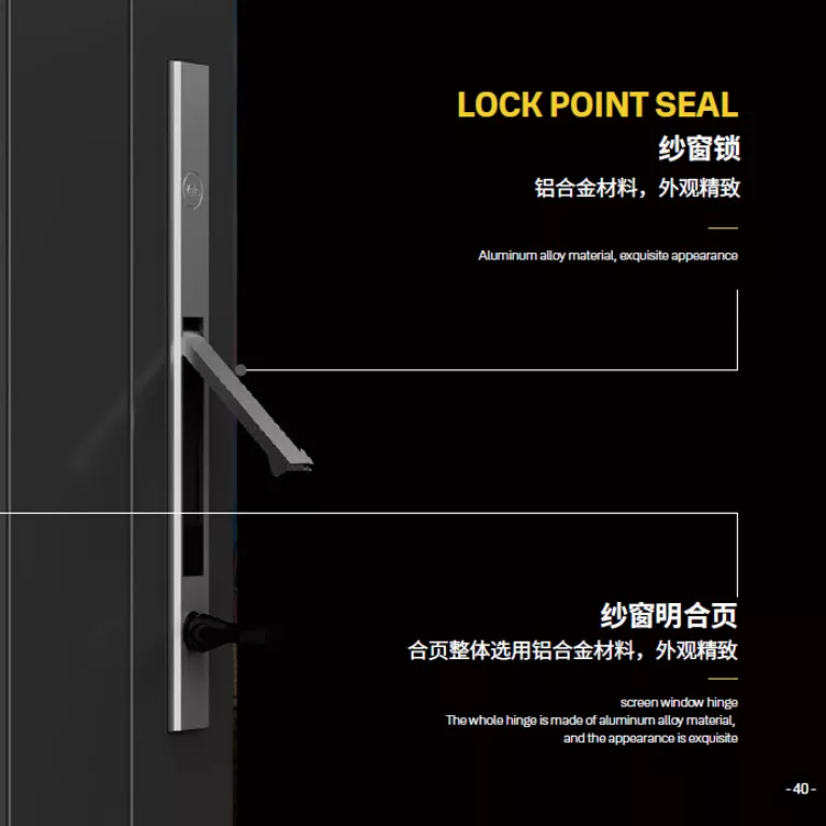High - strength zinc alloy material , strong lock body ; hidden handle , the window is beautiful as a whole ; fingerprint logo design , full of exquisiteness;