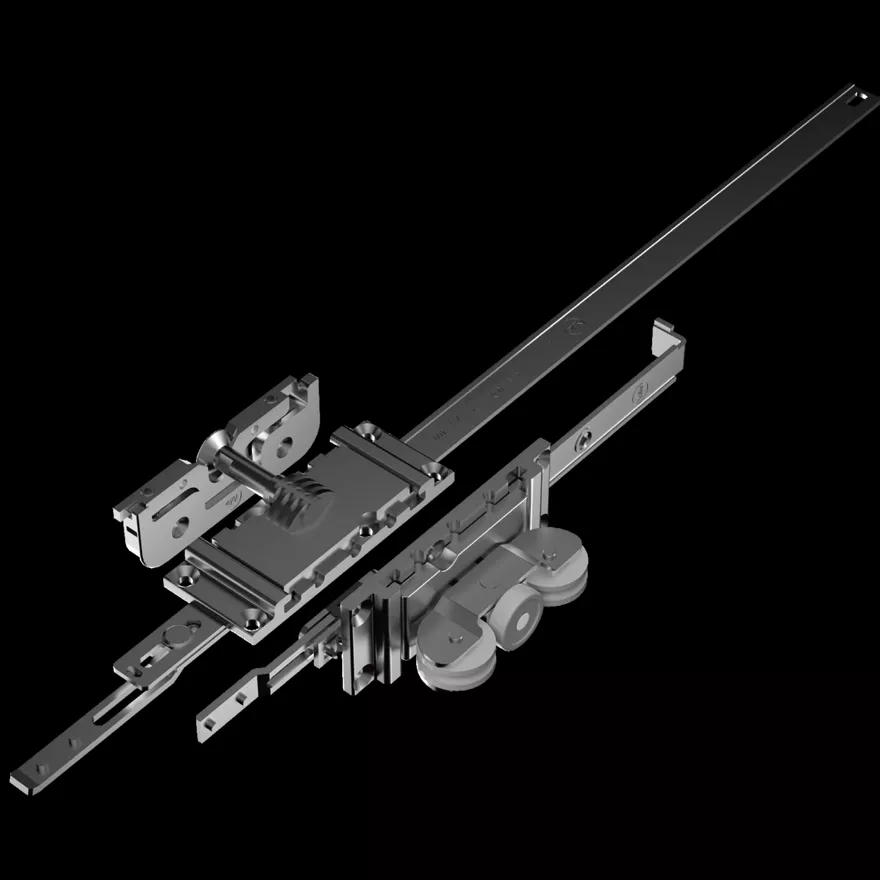 耶鲁平移推拉门窗五金系统整体采用模块化组合,调整模块组合,可根据门窗高度增减中间锁闭装置,整体承重